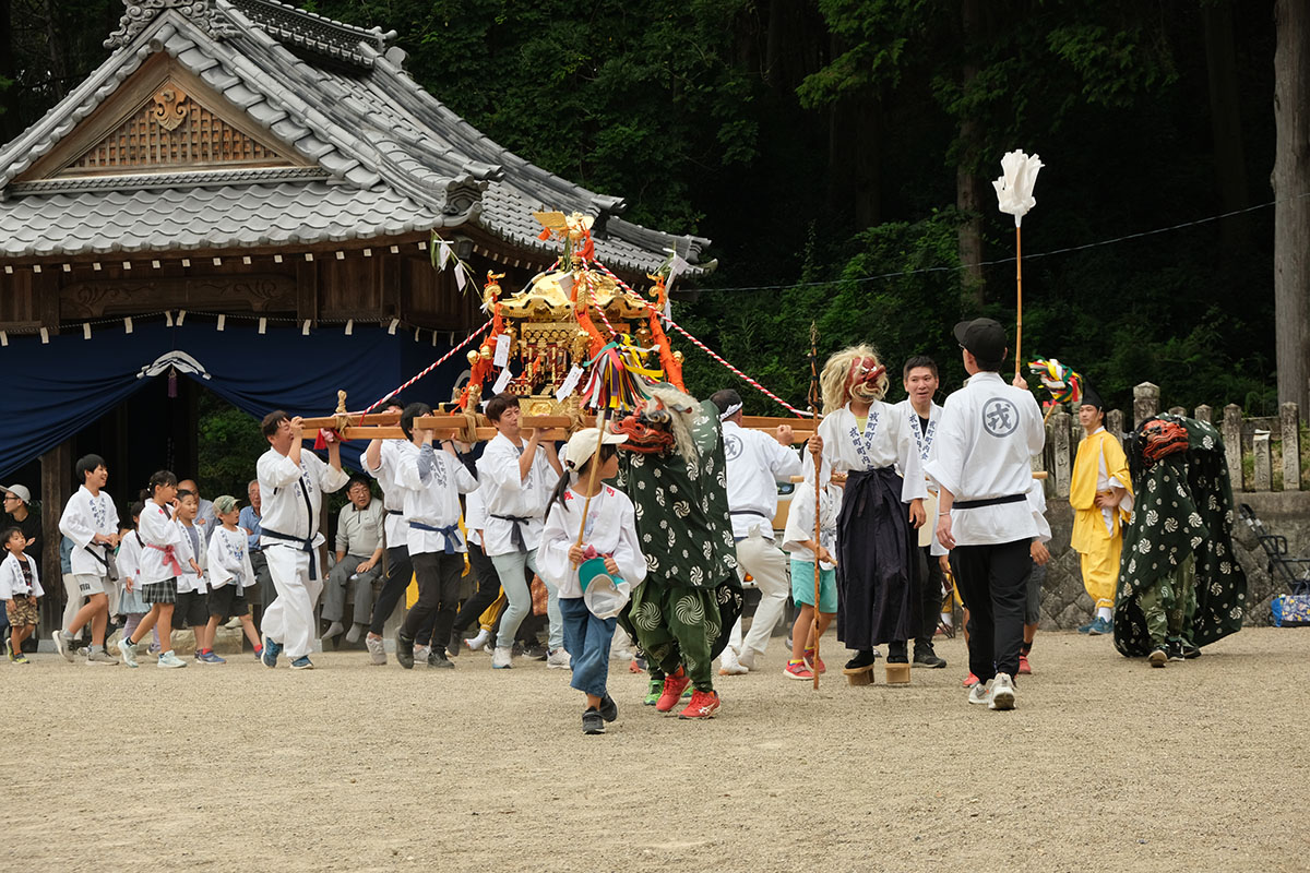 神社にて神事~、13時00分より西脇区厄除神輿宮入り。